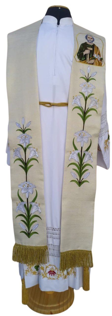 Estola podendo ser confeccionada em: linhão / oxford / adamascado ou brocado.